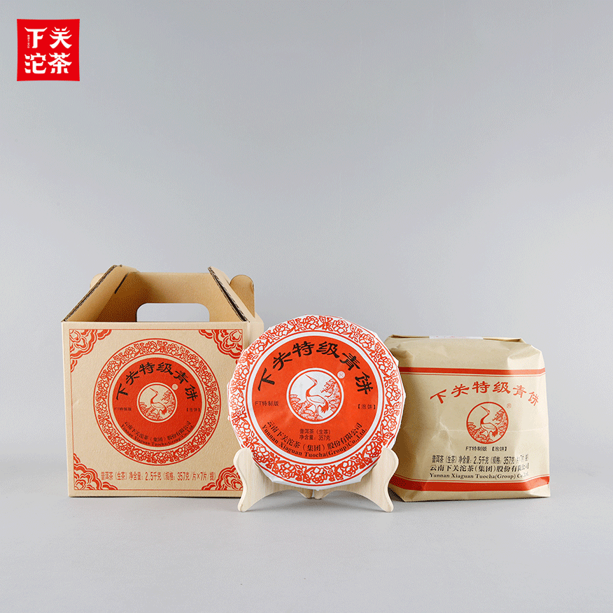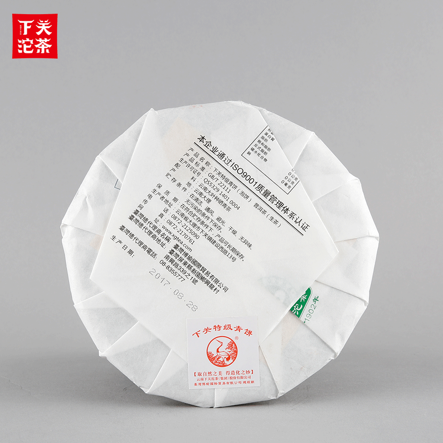 357克紙袋提盒裝下關(guān)特級(jí)青餅(泡餅)普洱茶(生茶)2017