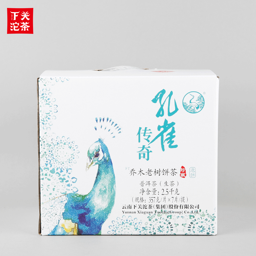 357克筍葉提盒裝孔雀傳奇 喬木老樹餅茶 普洱茶(生茶)2017