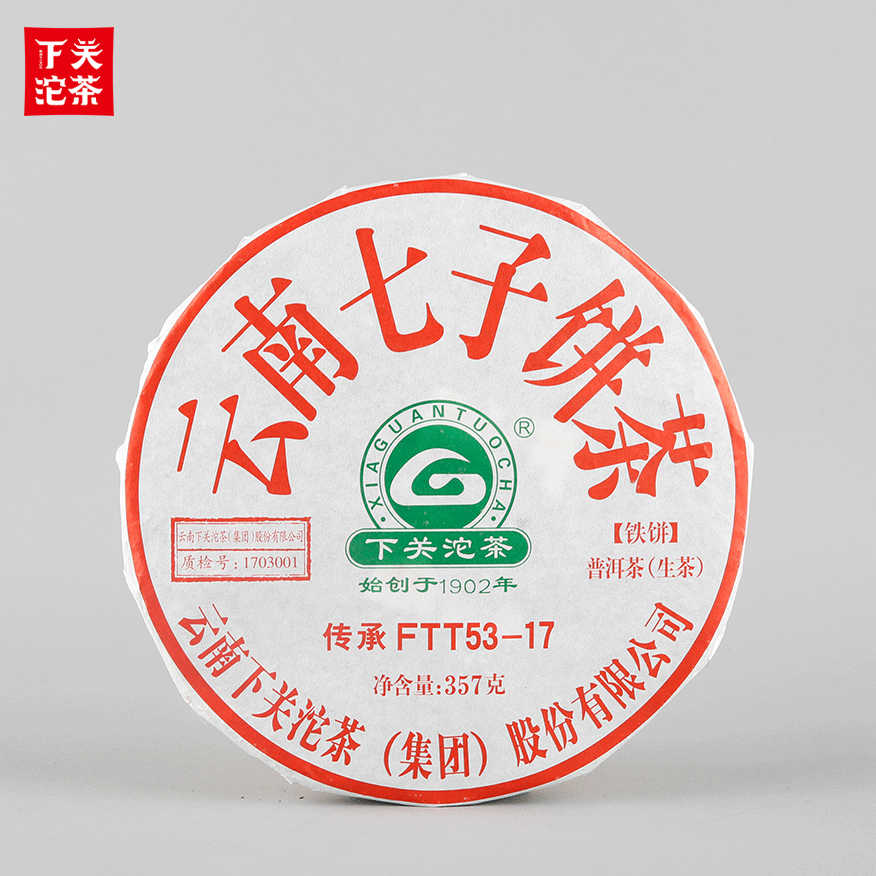 357克筍葉竹籃編織袋裝傳承FT53-17 云南七子餅茶(鐵餅) 普洱茶(生茶)2017