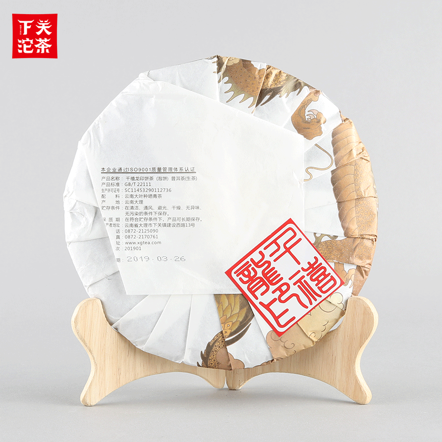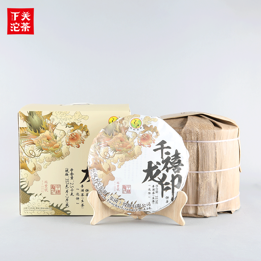 357克筍葉提盒裝干禧龍印餅茶 普洱茶(生茶)2019