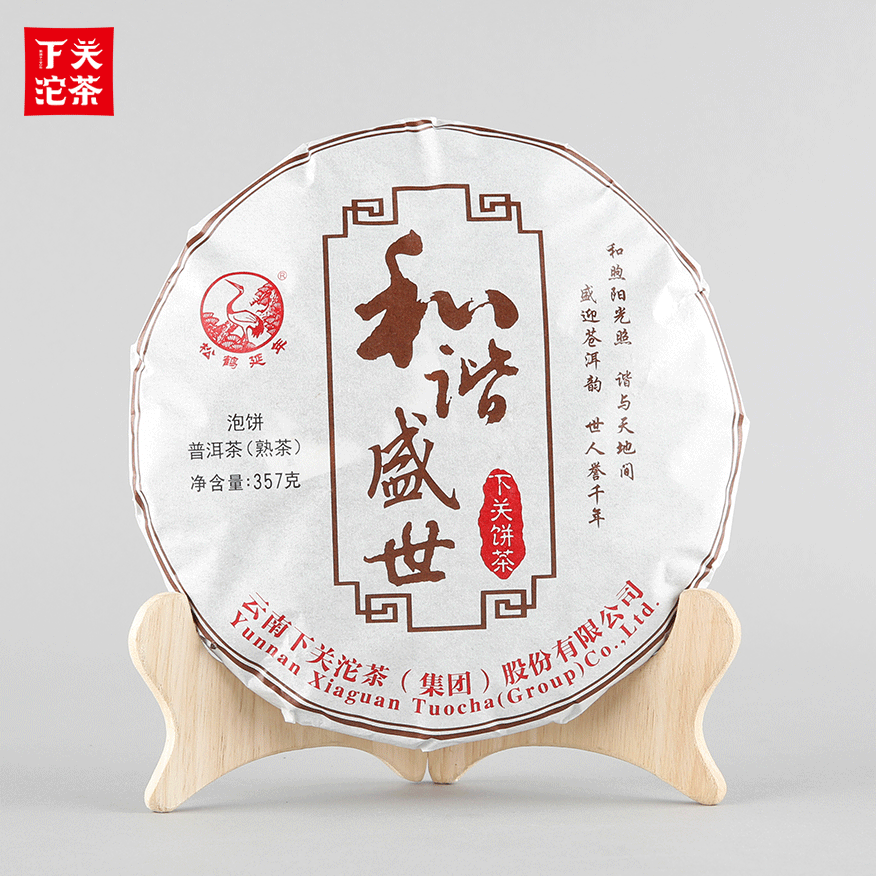357克紙袋提盒裝和諧盛世餅茶 普洱茶(熟茶)2019