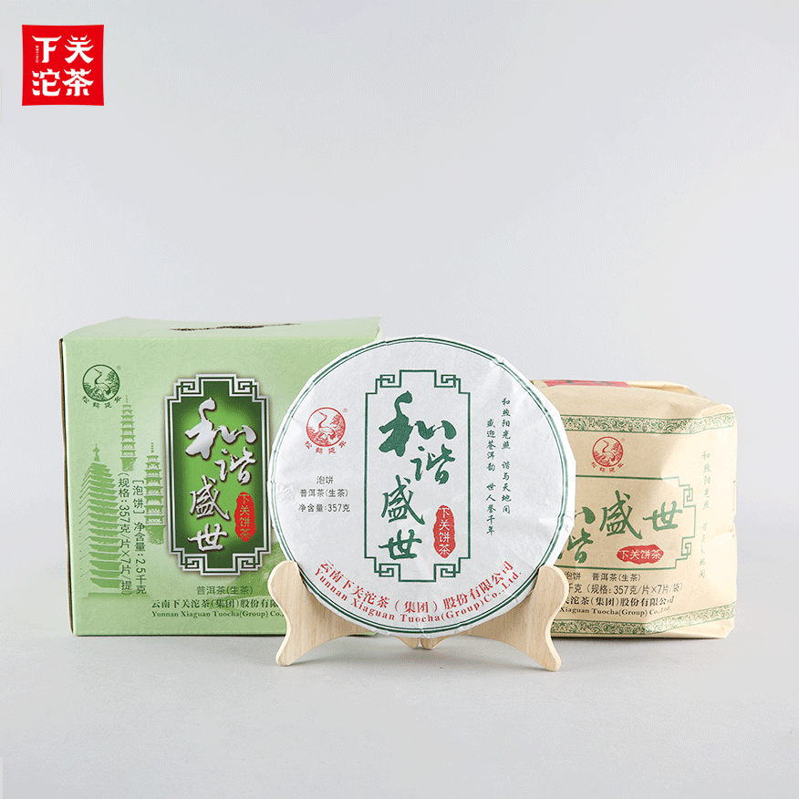 357克紙袋提盒裝和諧盛世餅茶 普洱茶(生茶)2020