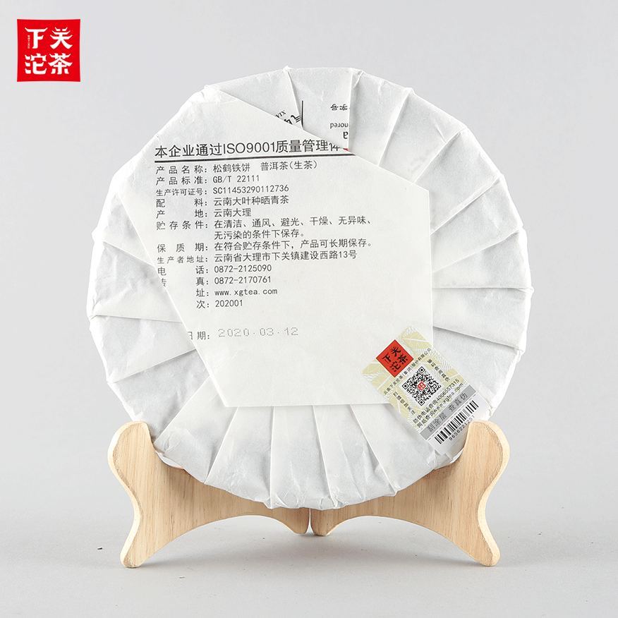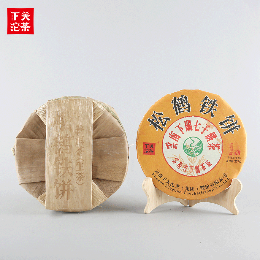 357克筍葉竹籃編織袋紙箱裝松鶴鐵餅 普洱茶(生茶)2020