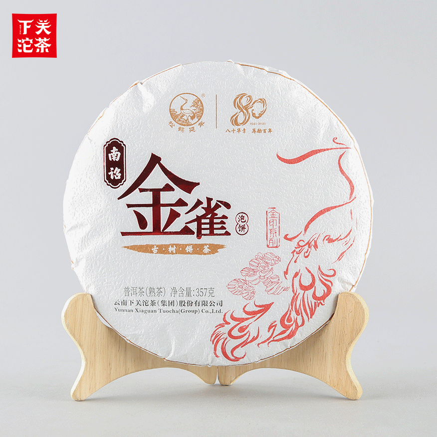 357克布袋提盒裝南詔金雀古樹餅茶 普洱茶(熟茶)2021