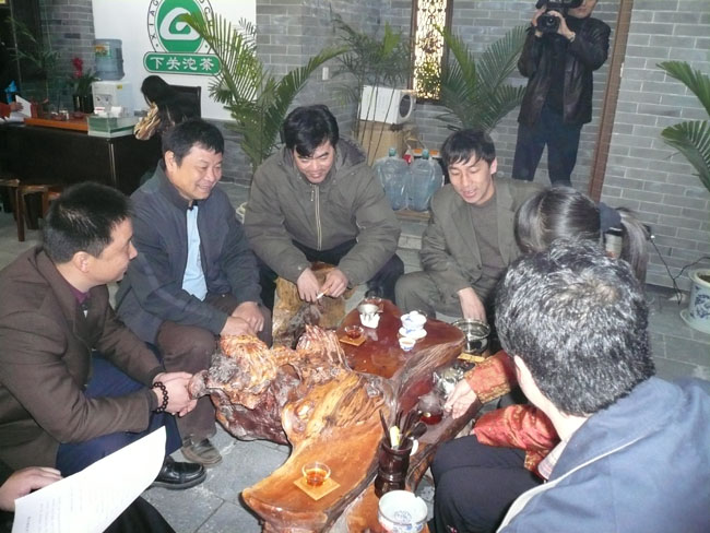 下午三點(diǎn)半兩家專賣店在貴陽天怡豪生大酒店舉行“百年經(jīng)典.下關(guān)沱茶”貴州聯(lián)誼品茗會(huì)。會(huì)場(chǎng)張燈結(jié)彩.布置華麗,氣氛熱烈,兩百多名嘉賓參加會(huì)議。原貴州省長(zhǎng)王朝文向大會(huì)發(fā)來賀信,原貴州省委副書記.省政協(xié)主席龍志毅,原貴州省軍區(qū)司令員陳慶云將軍,原貴州省政協(xié)副主席陳天賦等老同志參加會(huì)議。貴州省民委,省文化廳,省科協(xié),省教育廳,貴州茶葉協(xié)會(huì),貴州食文化協(xié)會(huì)負(fù)責(zé)人參加品茗會(huì)。下關(guān)沱茶集團(tuán)公司副總經(jīng)理吳青到會(huì)祝賀,并向兩家專賣店授牌。會(huì)上茶藝師為嘉賓們作茶藝表演,向嘉賓們展示下關(guān)沱茶系列產(chǎn)品,并讓嘉賓們品嘗下關(guān)沱茶。貴州省著名書畫家親自為兩家專賣店題字作畫?!扒鹈澜斩?,沱茶淳香進(jìn)萬家”寫出了到會(huì)嘉賓肺腑之言。貴州電視臺(tái). 貴陽電視臺(tái). 貴州都市報(bào). 貴陽晚報(bào). 貴州商報(bào)等新聞媒體派出多名記者到場(chǎng)采訪并跟蹤報(bào)導(dǎo)。