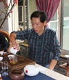 大成班章,集班章之大成!優(yōu)選海拔1700米以上云南布朗山古老茶區(qū)中樹齡300年以上喬木茶樹明前高檔茶菁,經(jīng)下關(guān)百年配方技藝及百年下關(guān)沱茶制作技藝精制而成。今日下午,重慶德軒龍茶業(yè)公司下關(guān)沱茶重慶經(jīng)銷商在渝北區(qū)黃泥磅鶯花渡茶樓舉辦下關(guān)沱茶“金鼎系列”――大成班章品鑒會。品茶會近百茶友,熱鬧非凡,重慶著名書法家戴三七現(xiàn)場書寫“大成班章”。