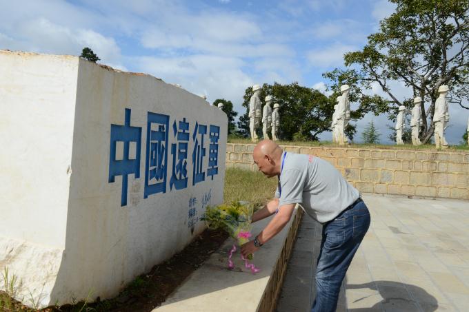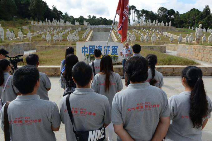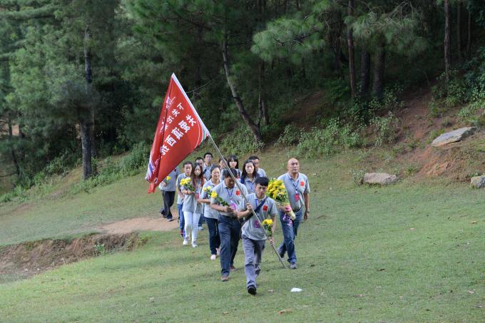 我們手捧鮮花,踏入了敵我傷亡1:7的戰場,心情無比沉痛。在中國遠征軍的紀念碑前,我們舉行了獻花儀式,公司總經理陳國風致辭,表達了對烈士深深的敬意。