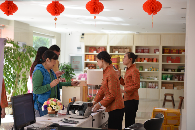 工作人員為進(jìn)店購(gòu)物的顧客解惑答疑