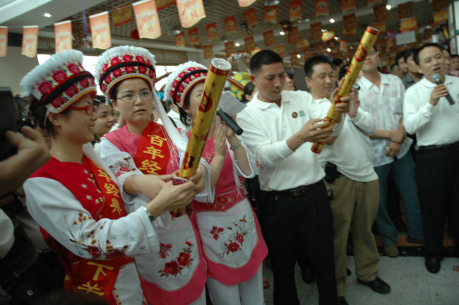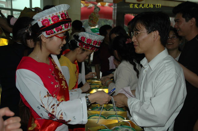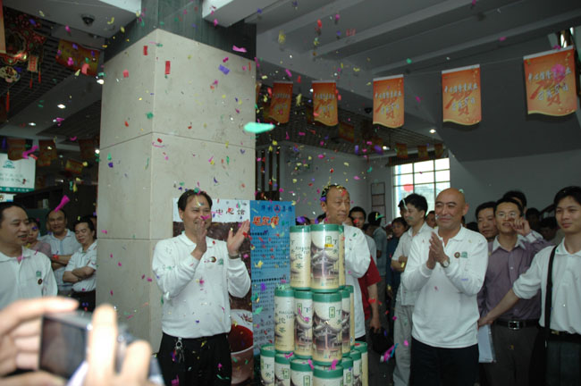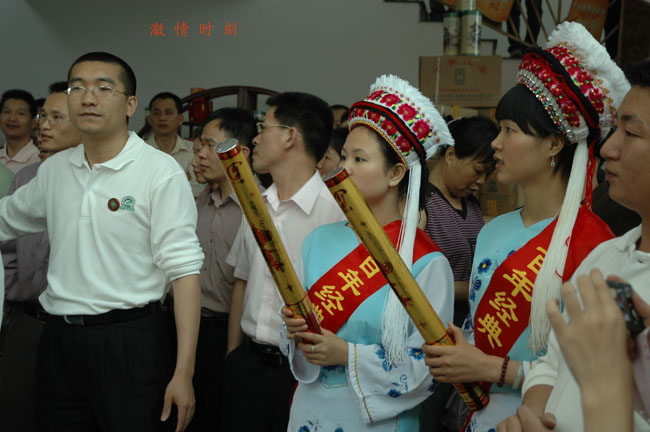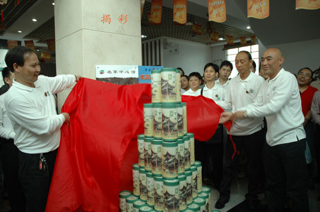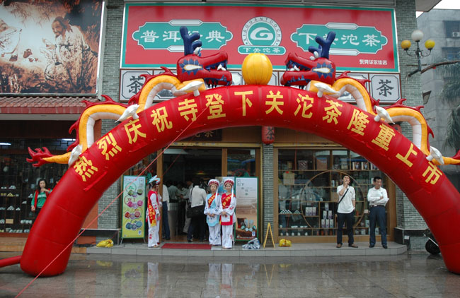 下午2點半,在九州茶文化中心舉行隆重的“下關沱茶首發上揭彩儀式”,在四面八方趕來的茶友們期待的眼光中和熱烈的掌聲中,下關沱茶集團公司羅董事長, 陳總經理和華爾佳茶業連鎖有限公司趙董事長一起為“寺登下關沱茶首發式”揭彩。