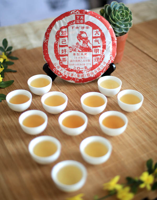 茶語綜評:頭羊賀歲,帶有下關一貫的“煙味”風格,但煙味淡,三泡后基本消失。整體湯質醇和,有淡淡的甜味,但整體適口度較好。生津回甘比較慢,但明顯。不足的是,湯水會有粗糙感,喝完后,留有微弱的澀感,澀味褪得慢,多泡后會堆積在舌面。