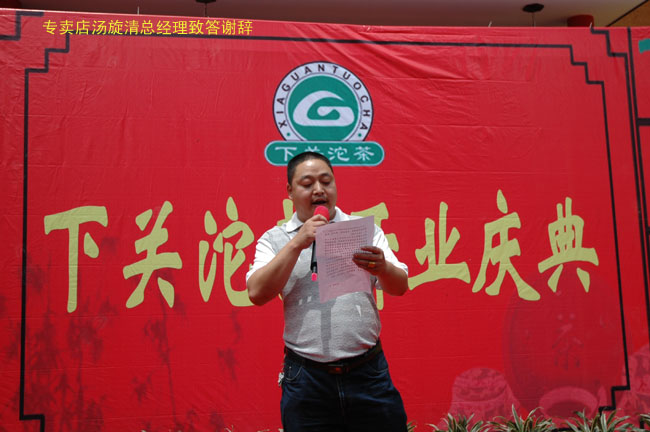 5月17日上午,在“2007國際茶業大會暨展覽會”即將開幕前夕,位于長沙市車站北路夢澤園A商鋪03號的“下關沱茶湖南爾福專賣店”舉行隆重的開業儀式。下關沱茶集團公司褚九云副總經理、湖南高橋茶葉協會郁樹強會長、湖南爾福專賣店湯旋清總經理、湖南怡清源茶業有限公司顏益龍常務副總經理等領導及嘉賓出席開業儀式,下關沱茶武漢、南京、柳州、江西等地區專賣店的總經理也應邀出席了開業慶典,整個開業慶典儀式隆重、喜慶。下關沱茶湖南爾福專賣店的開業,預示著下關沱茶品牌在瀟湘大地將進一步得到提升和推廣。