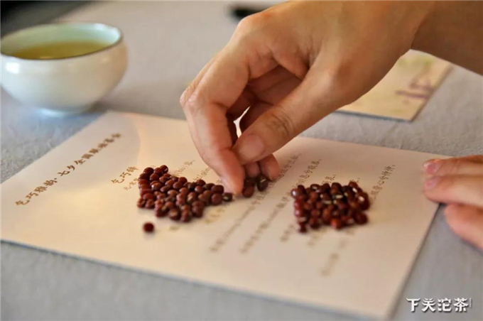 現(xiàn)場每一位茶友隨手抓出一把紅豆,若抓到的紅豆數(shù)量中帶“7”或者是“7”的倍數(shù),即可獲得茶會禮品。