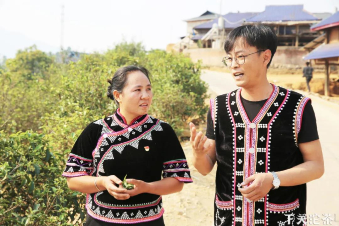新?o基地村民小組是一個僅有17戶農戶的貧困村,全村有16戶68人都是建檔立卡戶,下關沱茶集團2020年采購新?o基地的生態茶,不僅穩定了村民的春茶收入,更獲得了當地茶農的熱烈歡迎,被稱作當地“布朗王子”的巖帕扁得知鑒茶團隊將在他們家的茶園向茶友做直播,難掩心中的喜悅。
