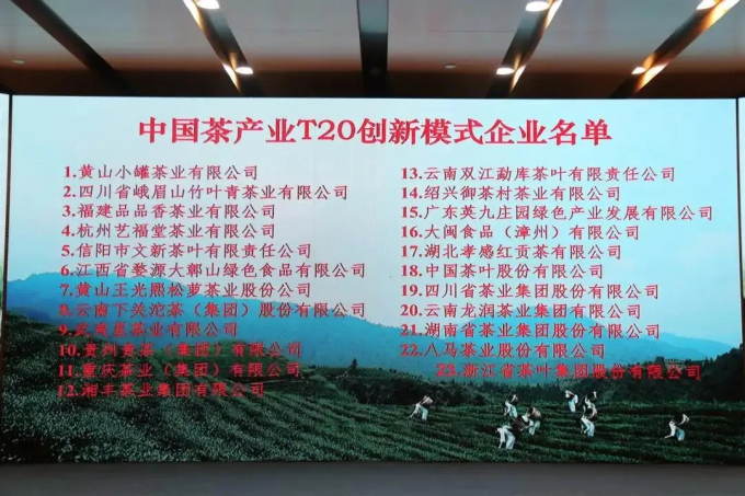 中國茶產(chǎn)業(yè)聯(lián)盟現(xiàn)場公布了“中國茶產(chǎn)業(yè)T20創(chuàng)新模式”推薦評選結(jié)果,在場領(lǐng)導(dǎo)和嘉賓為23家企業(yè)頒發(fā)了證書。