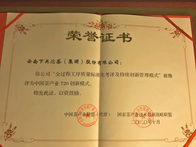 公司自1993年7月起率先在全國茶行業(yè)始創(chuàng)并如期完善創(chuàng)新了“全過程工序質(zhì)量標(biāo)準(zhǔn)化考評及持續(xù)創(chuàng)新管理模式”,兩次榮獲“云南省十大質(zhì)量標(biāo)桿企業(yè)”, 使公司產(chǎn)品質(zhì)量始終在行業(yè)內(nèi)領(lǐng)先。