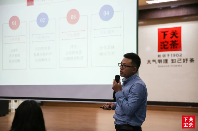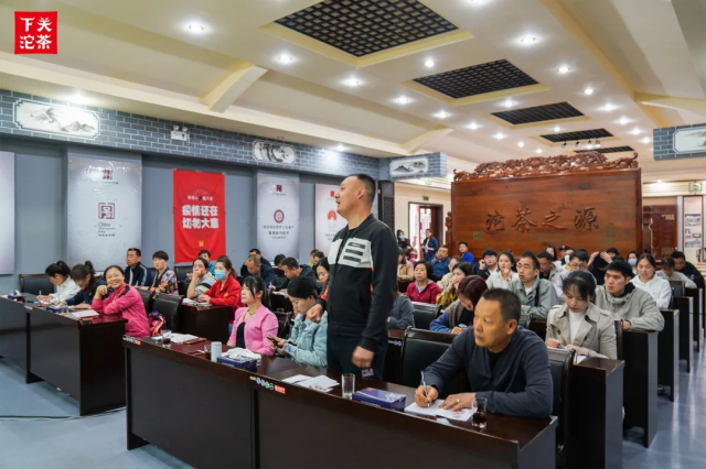上午來到公司大會(huì)議室,聽取褚九云教員為大家分析國內(nèi)外茶葉行情以及普洱茶現(xiàn)狀分析。隨后由陳茂教員給大家講解下關(guān)沱茶產(chǎn)品體系。