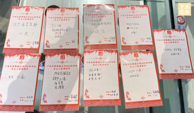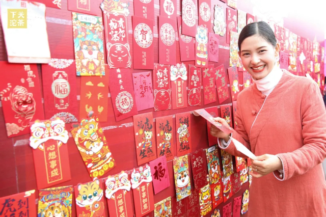 大家提前將自己的新年愿望寫在心愿貼上,并到紅包墻上進行粘貼交換。