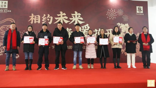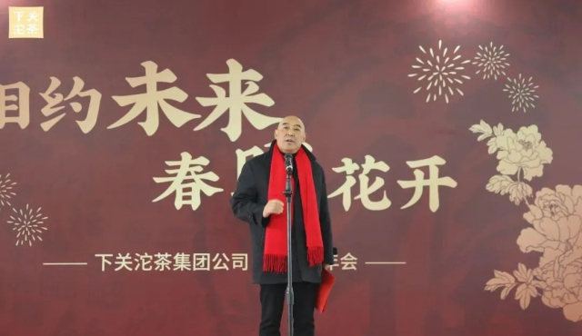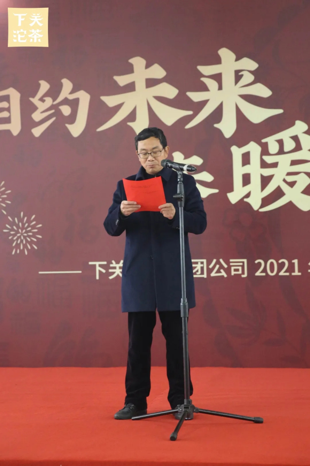 下關沱茶集團公司董事長陳國風先生致辭。他說,在2022年新春到來之際,謹代表公司向全體員工致以衷心的感謝及新年的祝賀。2021年各部門嚴格管理、積極向上、團結一心,公司獲得了健康、穩步、持續的發展;展望未來,希望我們繼續盡一切努力,抓住機遇,把握市場發展的良好勢頭,新的一年以新的姿態,譜寫新的篇章。