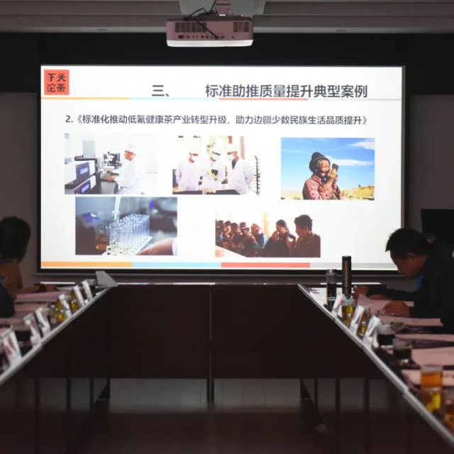 陳文旌調研員以云茶產業發展現狀為背景,指出下關沱茶作為百年品牌,歷史底蘊深厚、消費基礎堅實,還是第四屆云南省政府質量獎獲得者,入選為目前全省唯一一個國家級消費品標準化試點(茶葉)項目,對引領云茶產業可持續健康發展具有重要意義。