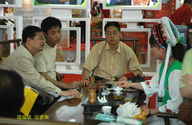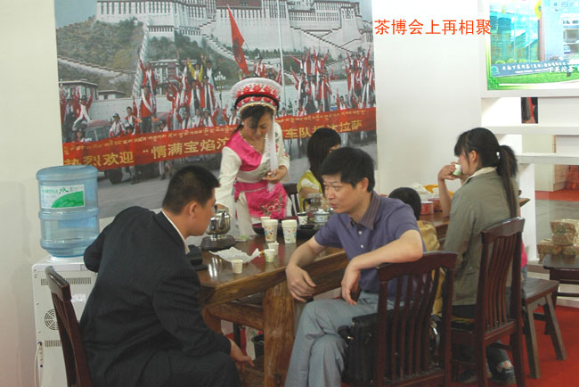 然而,在第三屆中國云南普洱茶國際博覽交易會(huì)上,下關(guān)沱茶仍一如既往地受到國內(nèi)外客商和茶友們的青睞,下關(guān)沱茶館始終是本屆茶博會(huì)上人氣較旺的一個(gè)展館,展館內(nèi)總有前來洽談業(yè)務(wù)的國內(nèi)外客商和購買沱茶的群眾。這里回放的一組鏡頭,也許可以讓您“管中窺豹 略見一斑”。