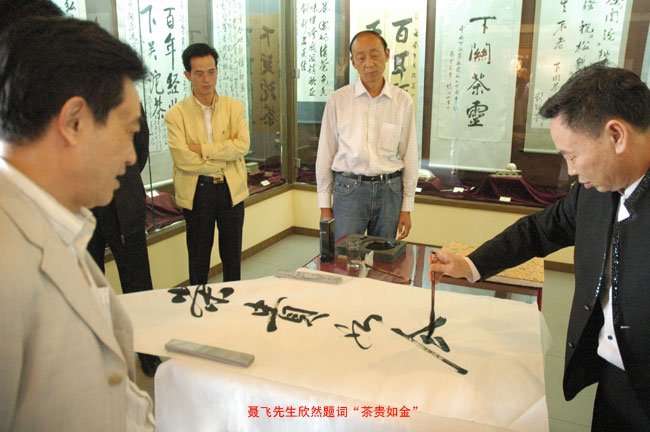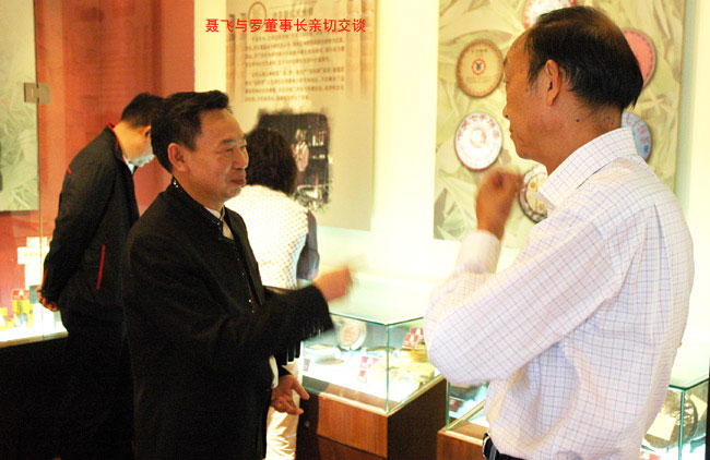 “五?一國際勞動節”是一個下關沱茶集團公司與文化名人結緣的日子。5月1日下午,當代著名書法家聶飛先生來到下關沱茶集團公司參觀,羅董事長陪同聶飛先生等一行客人參觀了下關沱茶博物館。