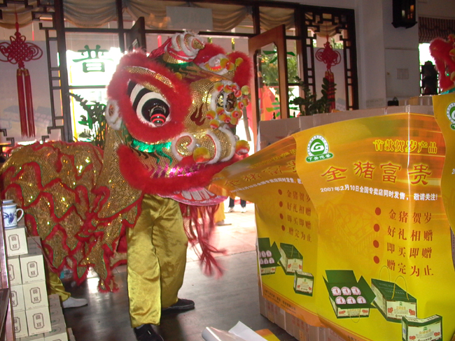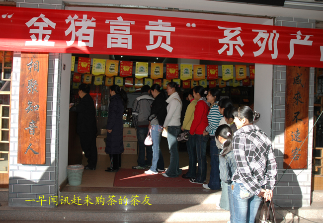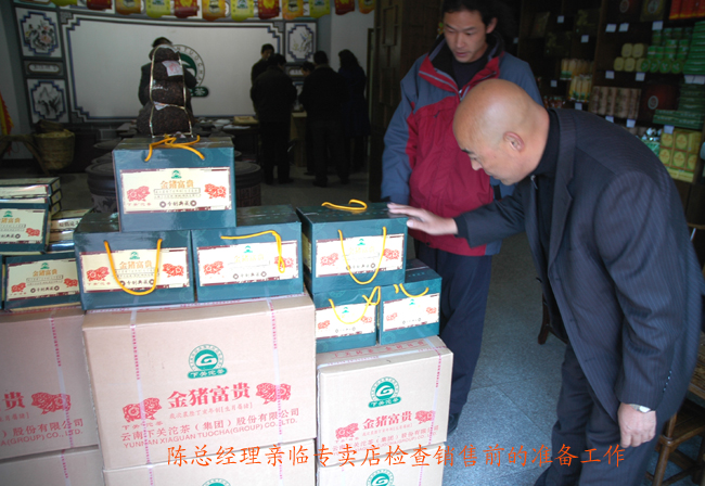 2007年2月10日,在下關沱茶集團的產品銷售歷史上將是一個載入史冊的日子,這一天,公司首次推出的12生肖典藏茶之首“金豬富貴 松鶴延年”賀歲茶,同步在全國27個省(市、區)的“下關沱茶專賣店”隆重上市。