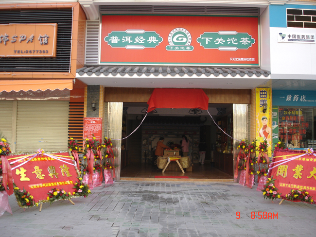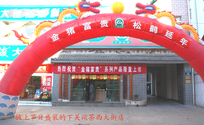2007年2月11日,下關沱茶廣州嶺南專賣店舉行隆重熱烈的開業慶典,金獅起舞,顧客盈門,開業慶典充滿濃厚的喜慶氣氛。下關沱茶廣州嶺南專賣店的開業,恰逢下關沱茶集團公司首次推出的12生肖典藏茶“金豬富貴松鶴延年”在全國統一上市,更為增添了喜慶氣氛。