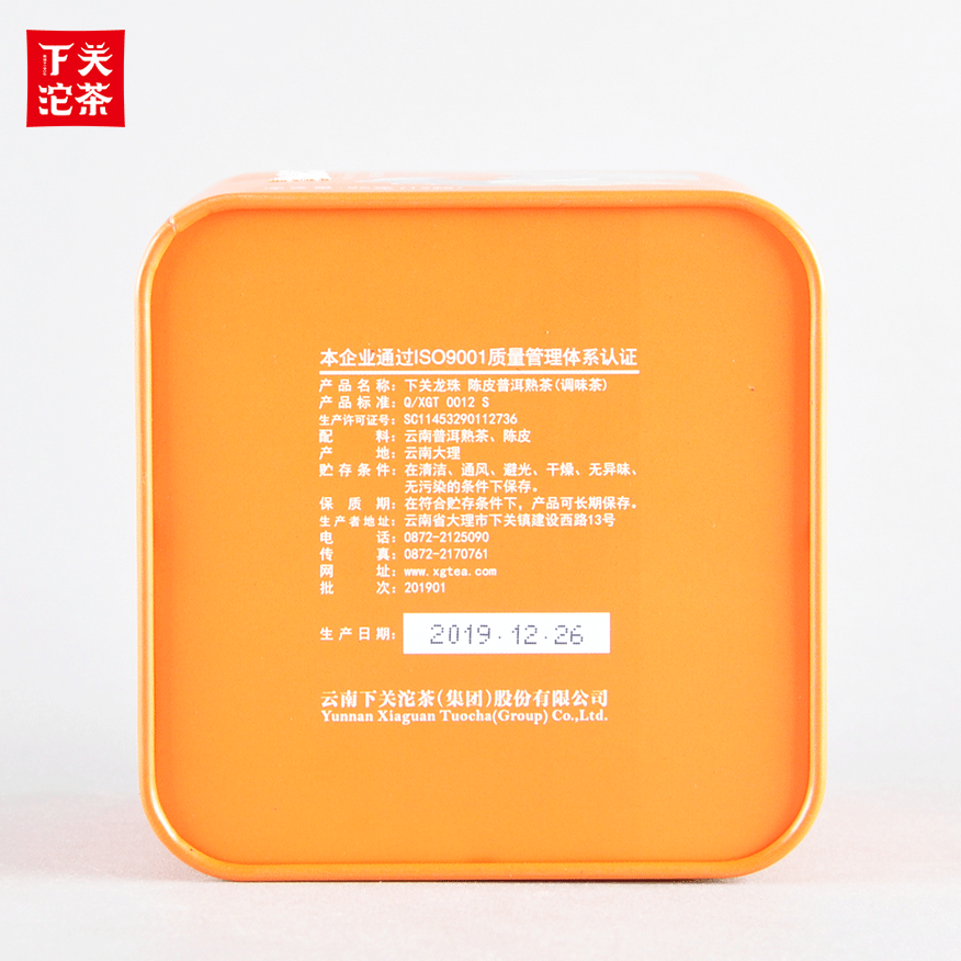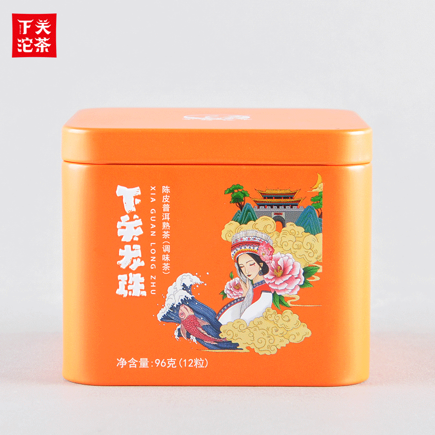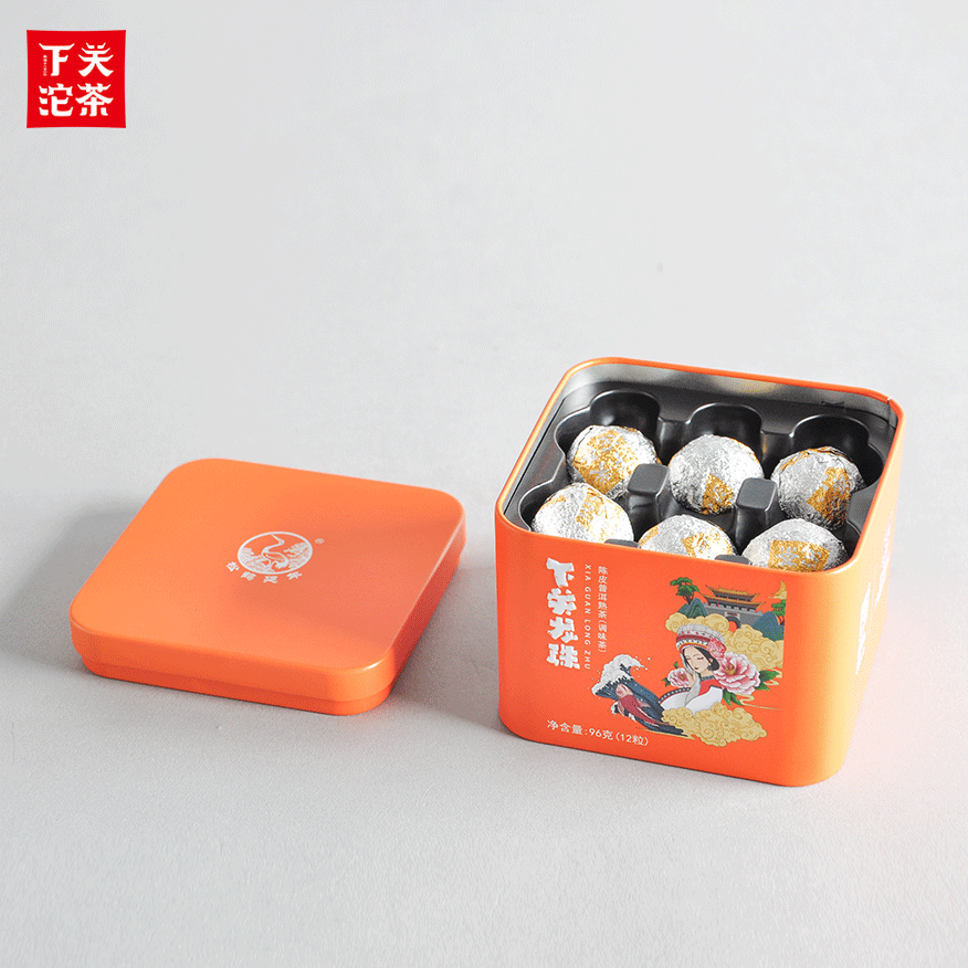 8克鐵盒裝下關龍珠陳皮普洱熟茶 2019