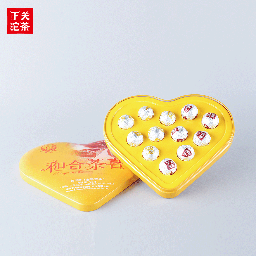 96克鐵盒禮盒裝和合茶喜(心形裝) 普洱茶(生茶+熟茶)2019