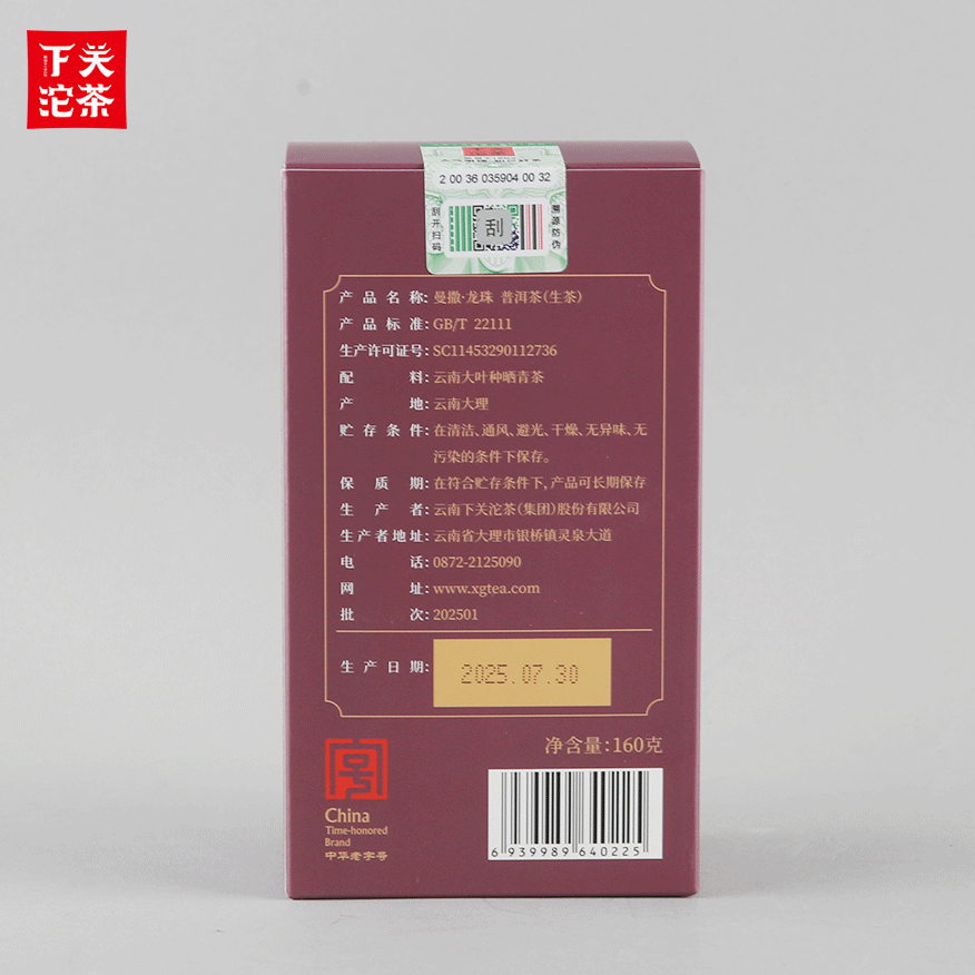 160克單盒裝曼撒·龍珠 普洱茶(生茶)2025