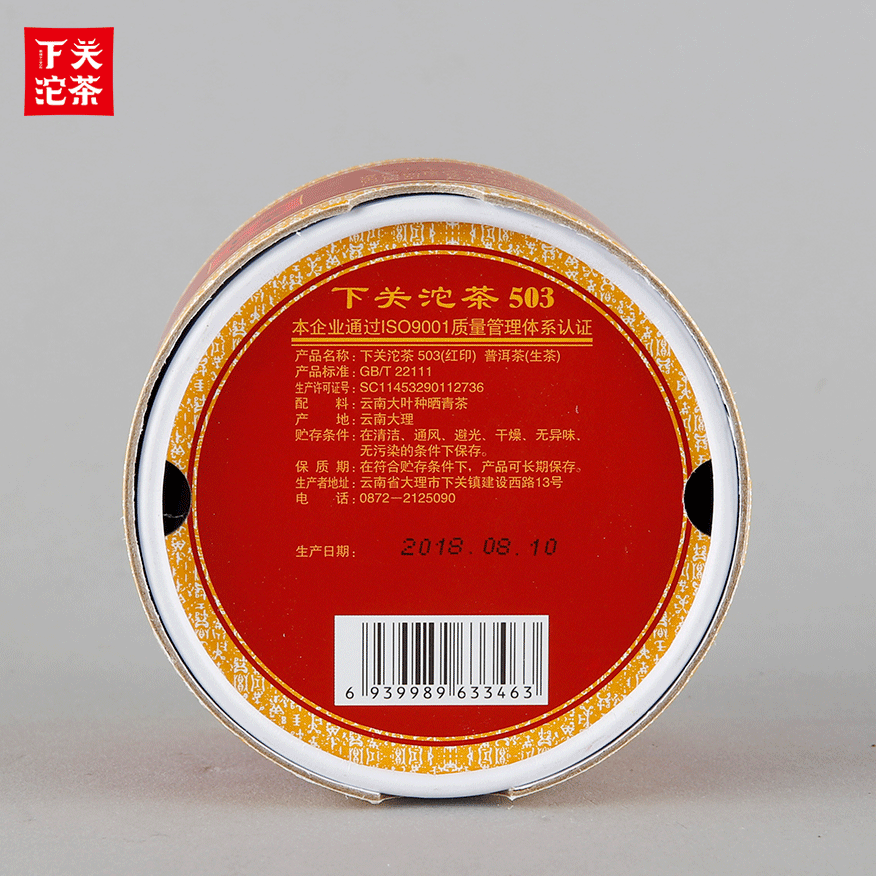 100克圓盒裝下關(guān)沱茶503(紅印)普洱茶(生茶)2018