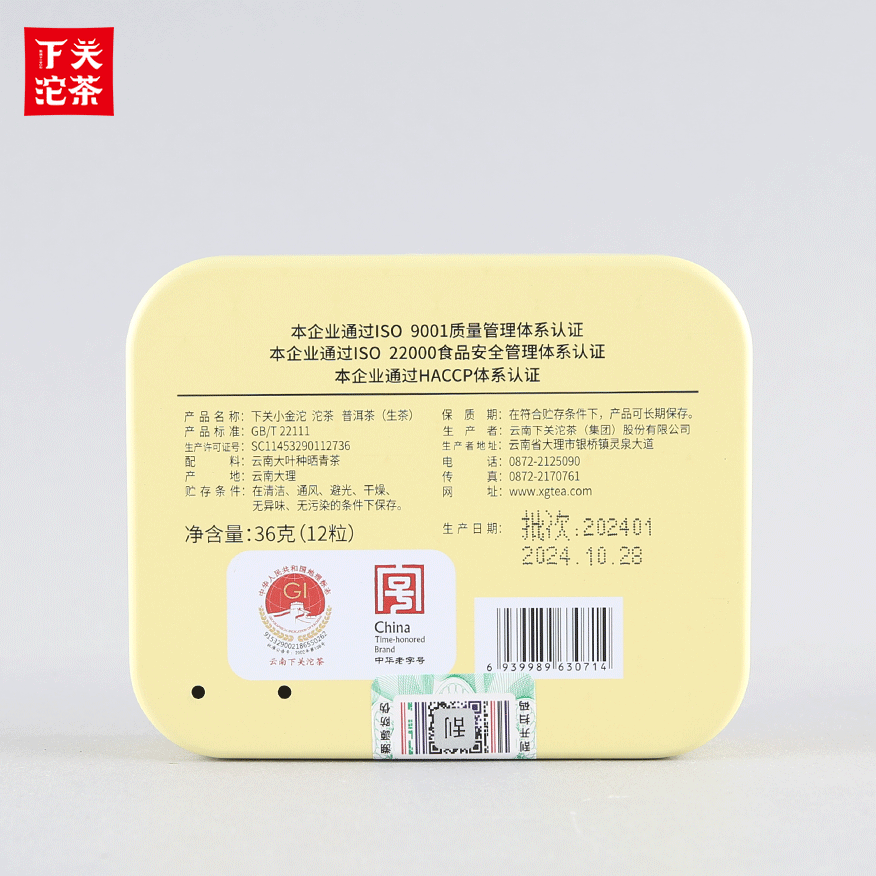 36克單盒裝下關(guān)小金沱 普洱茶(生茶)2024
