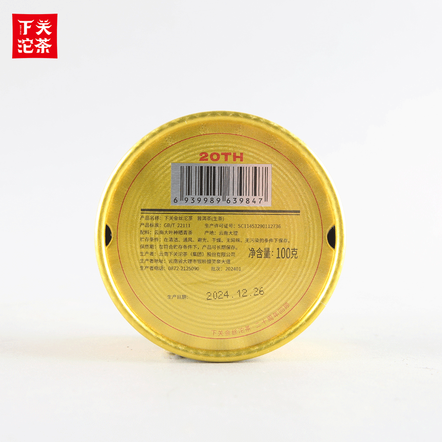 100克圓盒裝下關(guān)金絲沱茶 普洱茶(生茶)2024