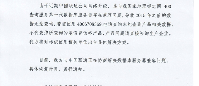 【通知】地理標志防偽標簽無法查詢通知1